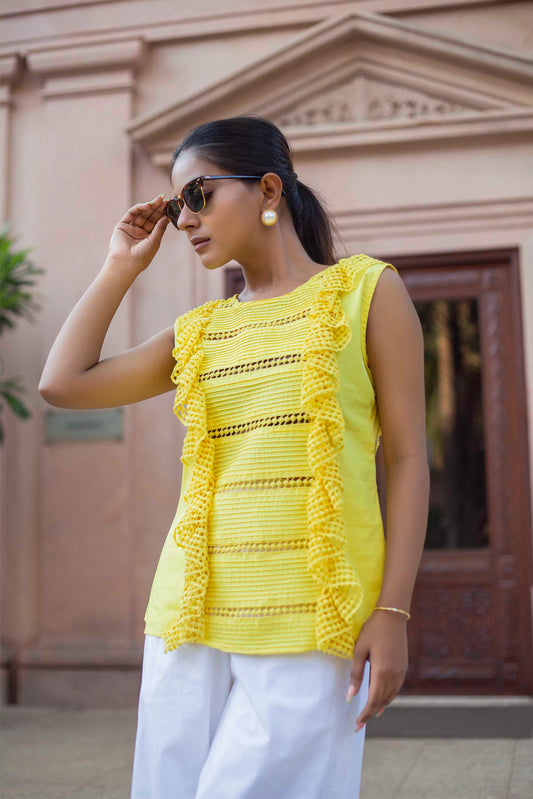 LACE FABRICS TOP WITH PINTUCKS